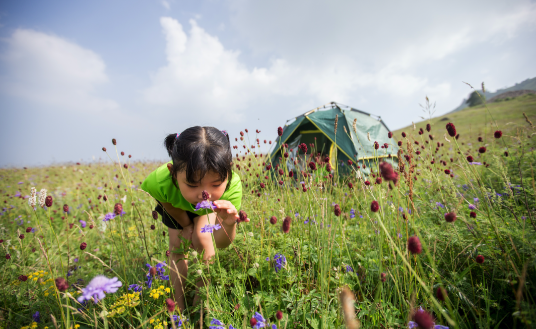 在山里放风筝、扎帐篷,置身大自然的怀抱
