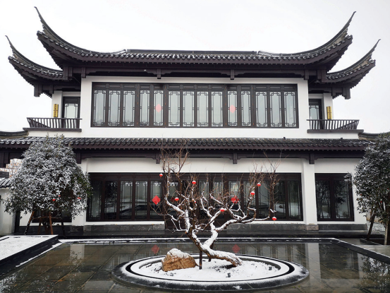 白墙乌瓦、屋顶房梁、木门窗格、檐廊天井,都尽可能多地保留亳州的历史元素,传统的外观下,是清水混凝土和干净的玻璃,窗外绿幽幽的风景直抵人心。