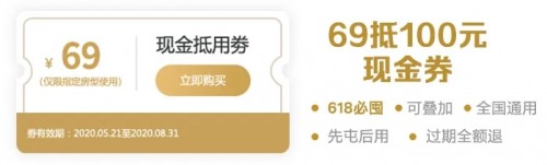 还有可叠加使用的现金抵用券,69元可以当100元花,购买时间截至6月30日。这意味着,一间门市价350元的客房,在叠加使用三张现金抵用券后,实际支付价格仅为257元,比最低的8折会员价还要便宜。