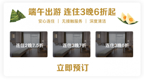 会员在同一订单中预订有“连住房”标识的过夜房,即可享受连住2晚7.5折,连住3晚低至6折的优惠。活动时间截至6月30日。