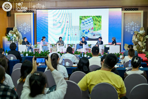 研讨沙龙二以“南山非遗成果的转化路径”为主要议题,由广西艺术学院建筑艺术学院院长林海主持。林院长指出,南山不仅拥有得天独厚的自然风光和丰富的旅游资源,更在向海而生的非遗传承与创新方面,甘担重任走在前面,深入探讨南山非遗成果的转化路径。中国民俗学会乡愁文化专委会主任李春园从瑞典文创达拉马作为常备的国礼,讲述了营销的故事。如何从终点返回起点,从品牌成功到对独特资源、设计的逆向设计思路;三亚学院艺术学院党总支书记、第六届亚洲沙滩运动会总设计师张鑫认为,南山做非遗有着强大IP的品牌号召力,做文创有强大市场,客户的需求,刚需和情感需求。更多关注情感需求。并结合设计实例,探讨了设计不仅要有在地性,还要有时代性;海南省东方市黎族传统工艺工作站负责人杨丽博士结合多年的田野调查分别从传承人群体、高校研究机构和非遗及衍生设计的研发平台三个角度来解读如何在守正创新中实现非遗成果转化,南山可以提供一个更为广阔的空间;黎族传统纺染织绣技艺代表性传承人吉菊莲结合自己的亲身实践让我们了解了非遗传承人蒸蒸日上的现状发展和质朴情怀;深圳市玲珑时空文化创意有线公司创始人徐茜女士分享了南山非遗中心的发展历程,并结合自身对海南非遗传承人调研的经历来分享海南黎锦、黎药的生活场景与价值意义;林海院长总结指出南山的发展路径中需要多重视野,全球化视野代表定位,非遗系统性保护视野代表原则,设计是方法,传播是技术手段。