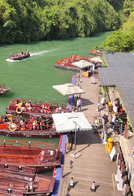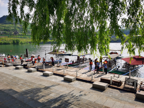 游毕芭拉胡景区后,车队陆续到达濯水古镇,家长们带着孩子井然有序的乘坐阿蓬江竹筏,在江上放松身心,欣赏濯水的自然风光,伴着习习江风,彼此吐露心声,双方更加了解彼此。