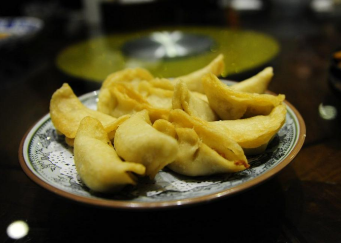 三河米饺是合肥市肥西县三河古镇传统的名小吃之一。三河米饺以籼米粉制成饺皮,用五花肉等食材及调料制成馅,成饺后油炸而成,色泽金黄,外皮微酥脆、馅味鲜美。