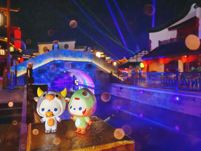 今年春节,无锡融创文旅城推出“万牛更新、嗨皮牛YEAR——画里过大年”系列活动,为无锡当地的消费者打造了一个独具新春气氛的文旅商融合的生态区。大年初一至初七,凡穿着古装服饰进入融创乐园的游客,或现场在运河人家汉服店更换古装衣物的游客,可享受免费“变妆”服务,体验一把“画”里过大年的乐趣。加入融创会员俱乐部的游客至融创乐园和融创茂内指定地点打卡并完成福、禄、寿、喜、财五个神仙布置的挑战,就可获得对应的祝福。