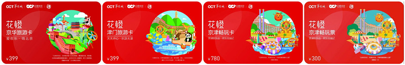 花橙京华旅游卡可玩转北京自然、人文、历史、文娱全覆盖的9大王炸景区!花橙津门旅游卡可一卡畅玩天津欢乐谷×天津玛雅海滩水公园×海河游船×盘山×光合谷动物园x蓟县溶洞6大乐游打卡地,更享精品国货优惠大礼!花橙京津畅玩卡可在有效期内无限次畅玩北京欢乐谷×天津欢乐谷×天津玛雅海滩水公园,欢乐特惠双城记就此轻松开启!花橙京津畅玩票可玩转北京欢乐谷×天津欢乐谷×天津玛雅海滩水公园3大欢乐圣地!黄金十月,让我们欢乐同行,共同感受祖国北方的大好河山!