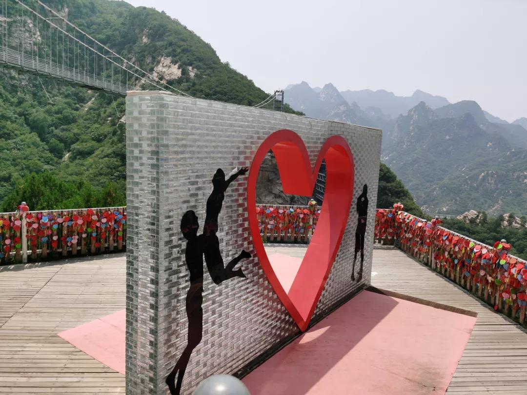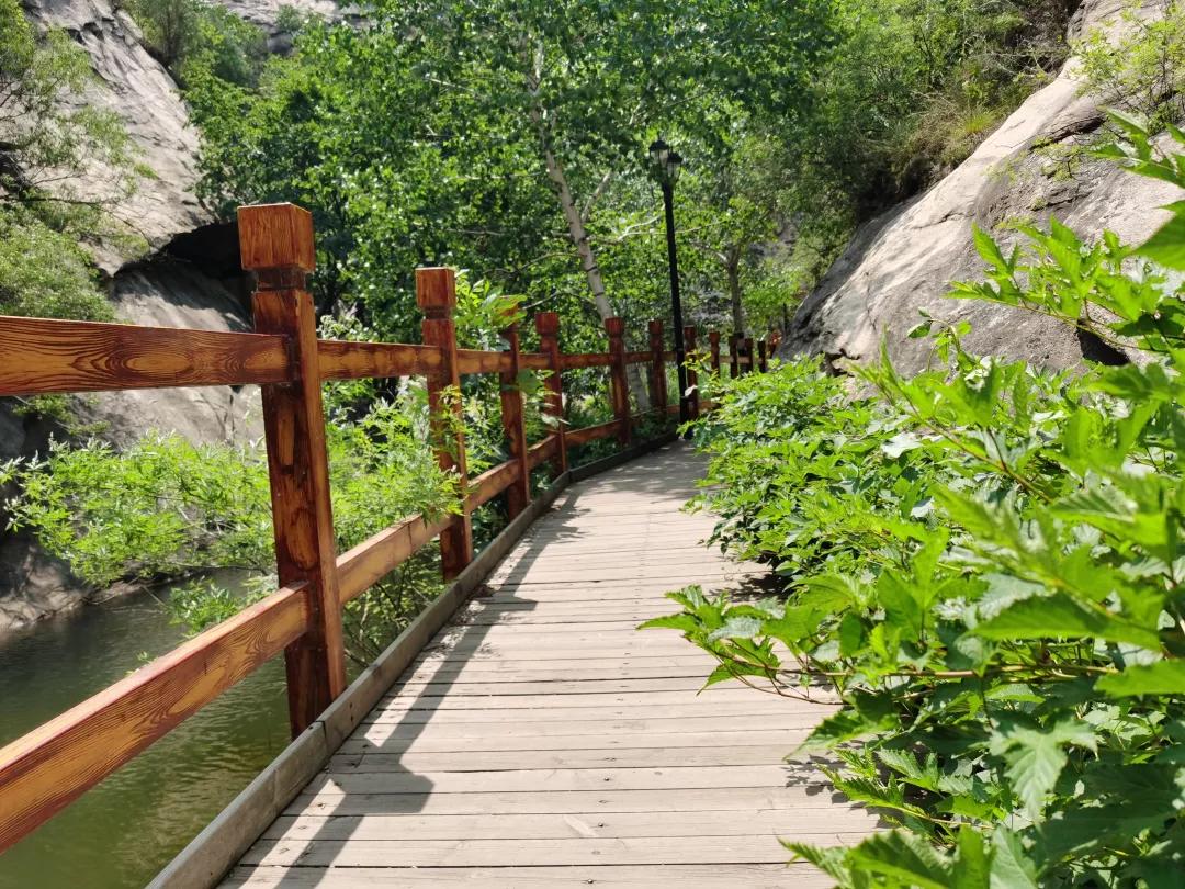 在景区最高处,清凉谷玻璃栈道掩映在青山绿树之间,别有一番风景。沿着曲径通幽的玻璃栈道,漫步其间,处处惊心,是一种让人心动的浪漫体验。