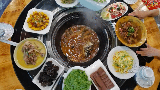 装修后的餐厅给人一种精致古典的视觉舒适感,专业厨师采集当地特色食材,主打东北灶台鱼,另有自助餐可供游客选择。