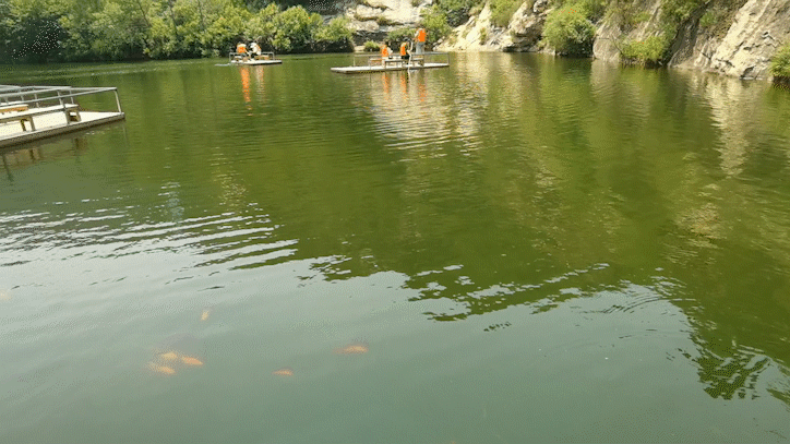 来到清凉湖岸边的亭廊,可以小憩一下。清凉湖四面环山、绿水白云,乘坐小舟、竹筏的人们,轻声交谈、欢快歌唱,阵阵凉风拂过脸庞,那惬意是何等享受。