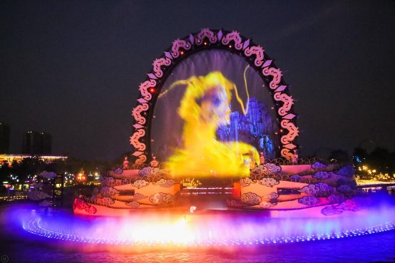 到夜场还有“大湖秀“大戏。在投影、喷泉、特效、灯光、激光、 焰火 、音响、舞台机械等媒体技术的配合作用下,精彩绝伦的激光、喷泉、焰火与音乐舞蹈表演完美结合,明朝年间一对恋人历经磨难的浪漫爱情故事娓娓道来。