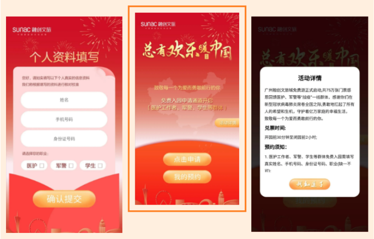 最后,附上广州融创文旅城免费游活动的领票方式,首先关注广州融创乐园官方微信公众号,点击右下方“福利活动”,选择“免费游预约通道”,依次填写个人信息即可免费领取。据悉,广州融创文旅城计划发放75万张免费票,活动一直持续至年底,需要提前一天预约。