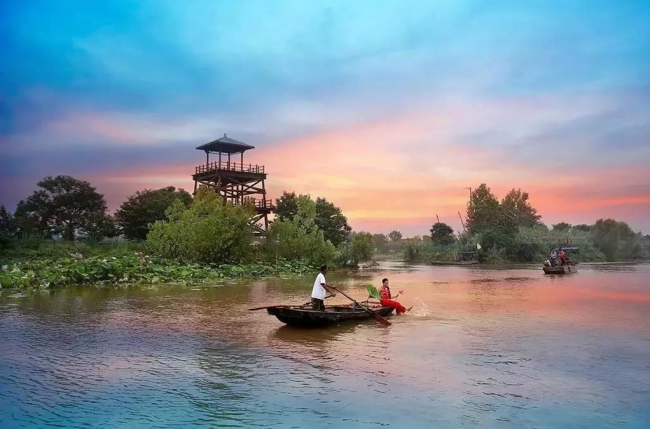 穆墩岛是洪泽湖上的一座天然“桃花源”。夏日炎炎,乘坐小舟,悠游在岛上一望无际的荷花荡中,密密层层的荷叶铺展开去,亭亭玉立的荷花娇艳绽放,清气扑鼻,幽香袭人。一边赏荷,一边领略大湖风光,感受日出日落和渔家风情,悠哉乐哉。