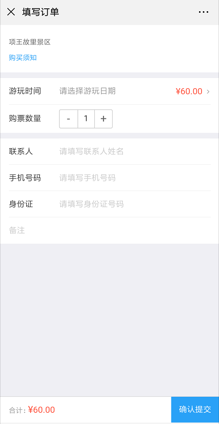 ❂ 填写订单,选择【游玩时间】,填写【联系人信息】,提交信息,完成!
