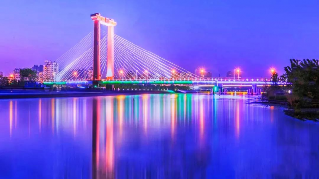 印象黄河双塔、宿迁大桥等建筑闪烁着霓虹,编织着夜的美丽;金鹰、万达等广场上早已人声鼎沸,展示着时尚夜生活;两岸高楼的璀璨灯光映照水面,交相辉映,犹如一幅幅动态图画,闪动着这座城市的万种风情。