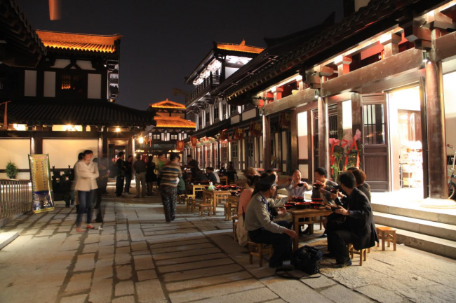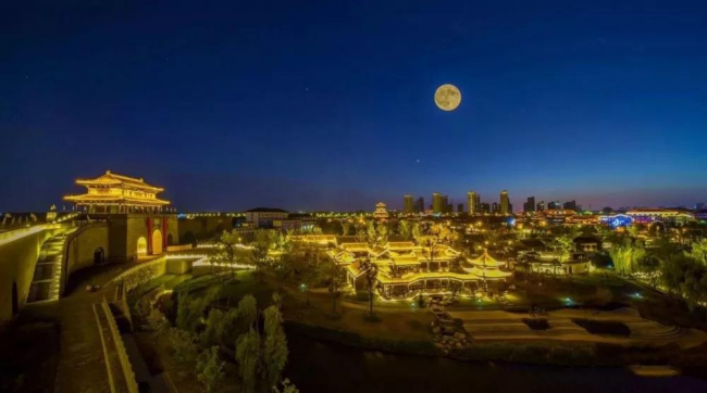 夜色中的西楚古城透着一种沉静典雅的美。古色古香的长廊里华灯闪烁,西楚风格的古朴建筑在水中愈加动人。步入项王故里,看一场精彩的西楚演出,品读西楚的盛世王朝,感受霸王虞姬的绝美爱恋。