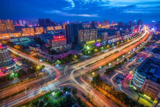 夜色下的宿迁流光溢彩,马路上来来往往的车灯汇成了灯的海洋、光的世界,为这座热闹而繁华的城市注入了新活力。马路两旁到处都是三三两两饭后散步的人们,边走边聊,悠闲惬意。远远望去,街道上的灯、车、人早已相互交融。