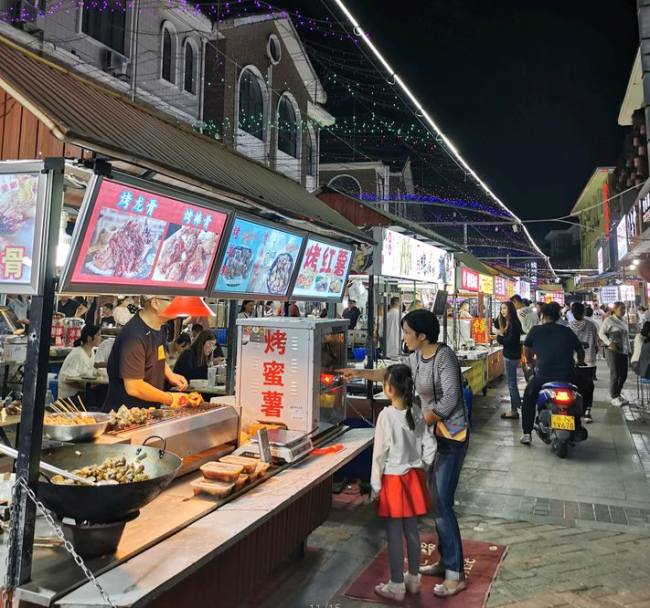 每当夜幕降临,宿迁的大街小巷便开始热闹起来。灯火通明的商铺、如织的人流、沿街的叫卖声、民间工艺和烧烤小吃应有尽有,市井气息弥漫在街头巷尾。